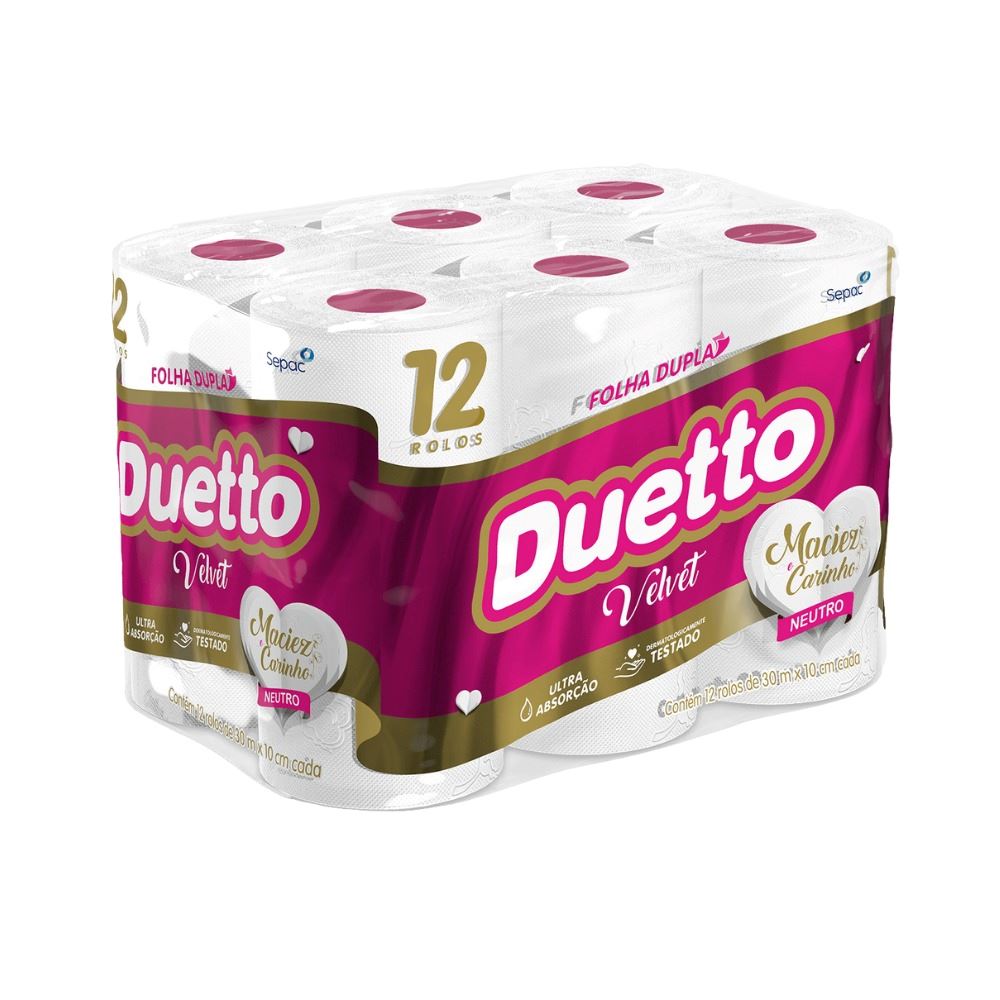 PAPEL HIGIÊNICO FOLHA DUPLA DUETTO C/12RL 30MT (6X12) VELVET