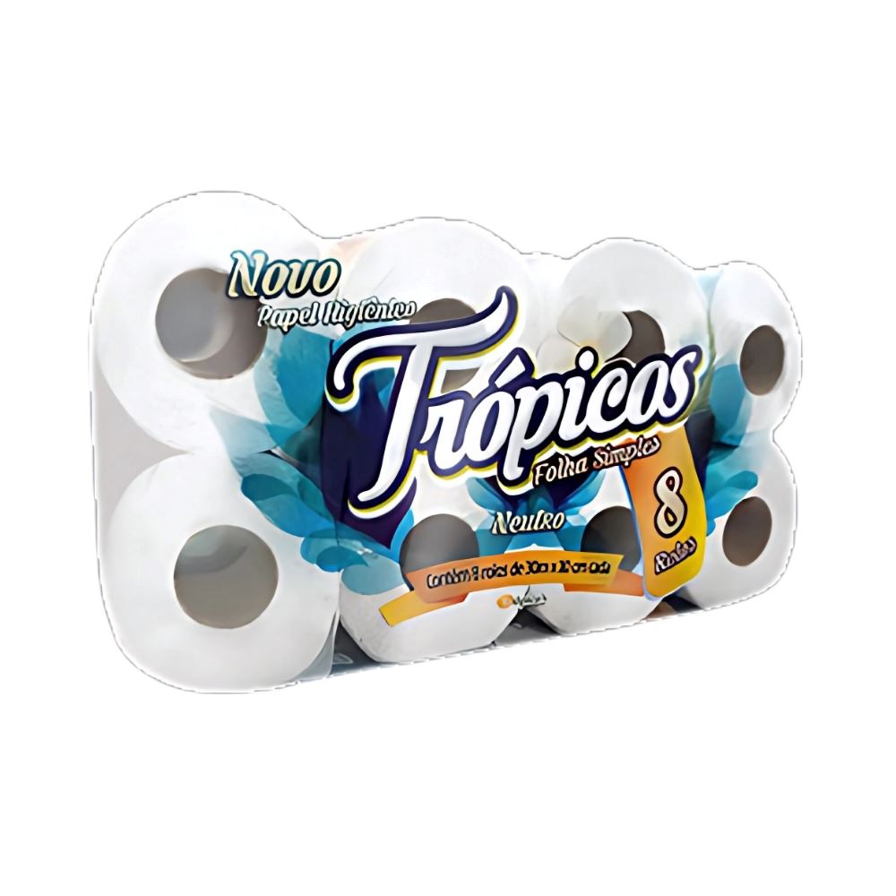 PAPEL HIGIÊNICO FOLHA SIMPLES TROPICOS C/8RL 30MT (8X8)