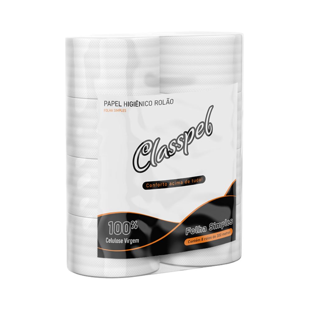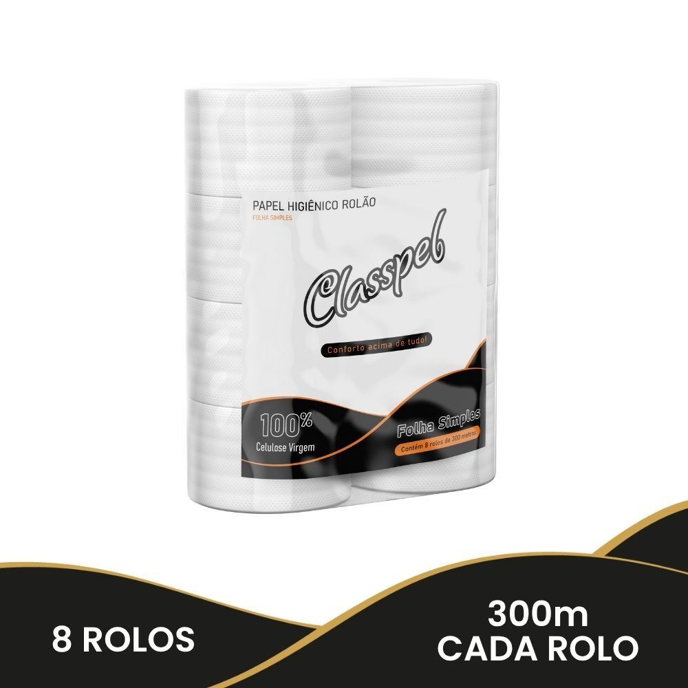PAPEL HIGIÊNICO ROLÃO FOLHA SIMPLES 100% 8X300 CLASSPEL PRO
