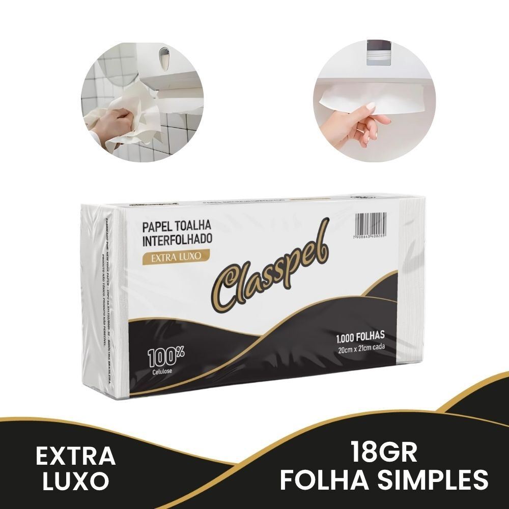 PAPEL TOALHA INTERFOLHADO 2 DOBRAS 100% 20X21 FS C/1000 18GR CLASSPEL PRO